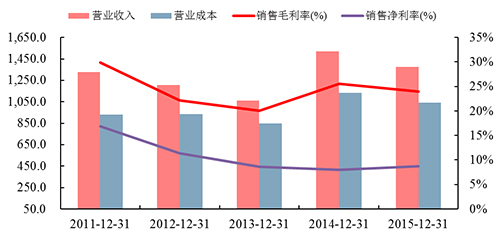 圖2:近五年中材節(jié)能業(yè)績表現(xiàn)(單位:百萬元)