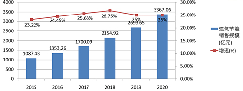 圖4:2015-2020年建筑節(jié)能市場銷售規(guī)模及增速預測