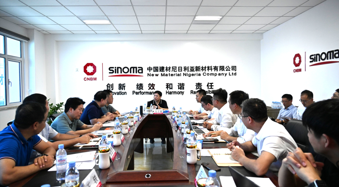 Recently, Wang Yumeng, Vice President of China National Building Material Group (CNBM), conducted an on-site inspection of safety production and security measures at New Material Nigeria Company Ltd, a subsidiary of Sinoma Energy Conservation Limited. Accompanying him were Li Ning, General Manager of CNBM’s Safety & Environmental Protection Department; Zhang Jinshu, Deputy General Manager of the Strategy Development (International Cooperation) Department; Liu Xin, President of Sinoma Energy Conservation Limited; and Liu Renyue, Executive Vice President of Sinoma International Engineering Co., Ltd.